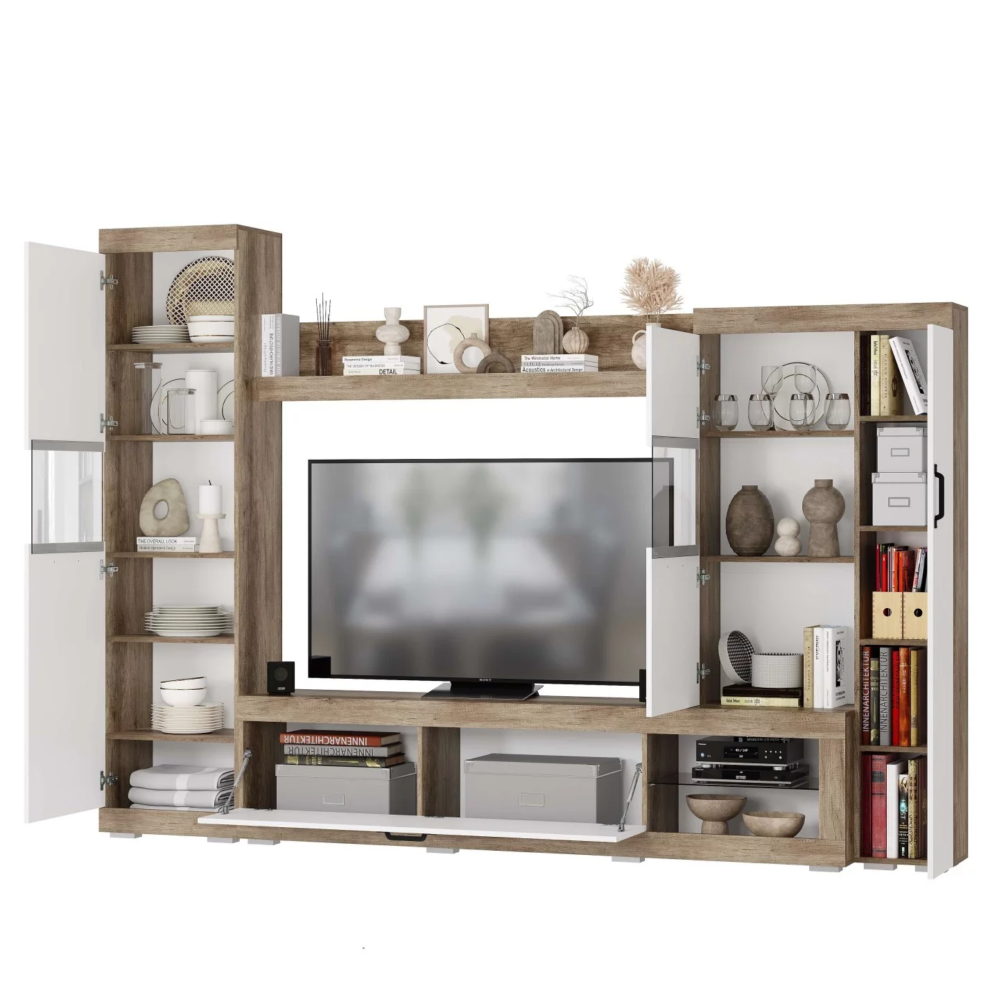 Современная гостиная «Тесла» выражает надежность, удобство и универсальность в домашнем интерьере, подчеркивая ваш интерес к инновациям и уникальным решениям. Корпус из ЛДСП в оттенке «Дуб каньон» с эффектом естественного породного спила дерева дуба, напоминающего текстуру сорта дуба премиум класса, гармонично сочетается с гладкими фасадами из МДФ в облачно-белом цвете.